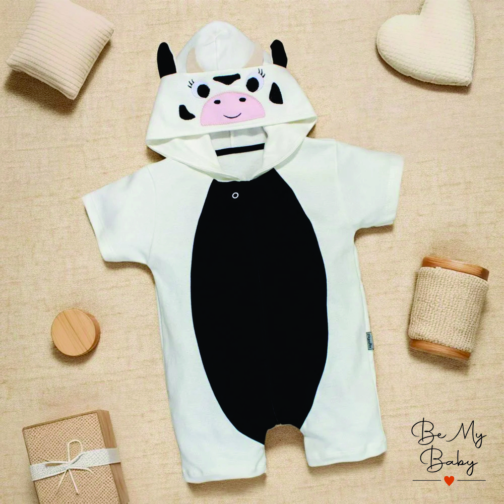 Macacão Temático Curto com Capuz Bordado e Abertura em Ziper - Vaquinha